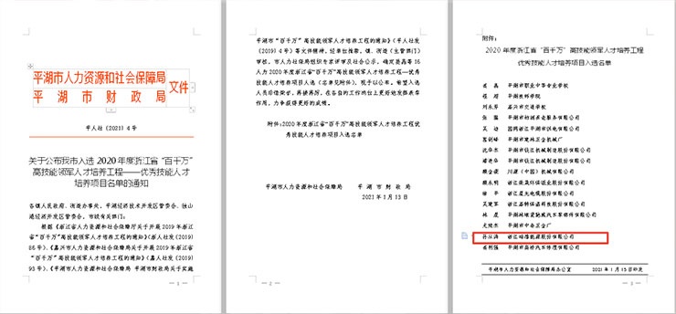 根據(jù)《平湖市人力資源和社會(huì)保障局 、平湖市財(cái)政局關(guān)于實(shí)施平湖市“百千萬(wàn)”高技能領(lǐng)軍人才培養(yǎng)工程的通知》(平人社發(fā)〔2019〕4號(hào))等文件精神,浙江鴻禧能源股份有限公司孫從濤同志成功入選2020年度浙江省“百千萬(wàn)”高技能領(lǐng)軍人才培養(yǎng)工程—優(yōu)秀技能人才培養(yǎng)項(xiàng)目人選。